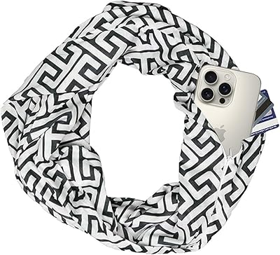 Pop Fashion Infinity Scarf for Women - Travel Scarf with Hidden Pocket - Greek Key Pattern Scarves